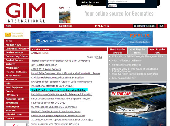 今日,《GIM》官方網(wǎng)站刊登南方專題報道——《傲然挺立、昂首向前的南方》(South Proudly Located in New Surveying Building),文章介紹了南方測繪近年來的發(fā)展狀況,肯定了南方在中國測繪行業(yè)中的地位。