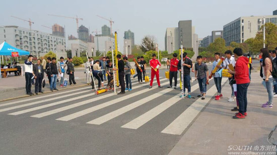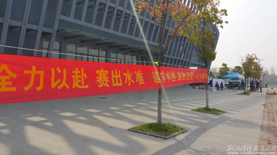 現(xiàn)場懸掛的橫幅寫上了南方的祝福
