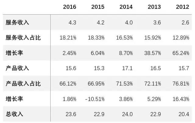 在天寶的業(yè)務結(jié)構(gòu)中,地理信息服務對營收的貢獻已經(jīng)越來越大,如今占到總營收的18.2%。過去5年間,天寶產(chǎn)品收入的增長近乎于停滯,業(yè)務的總占比下降了10%,而服務方面的收入?yún)s在穩(wěn)步增長。