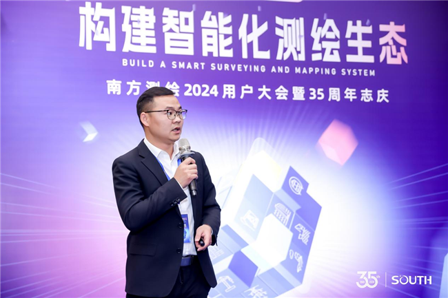 南方測(cè)繪昆明分公司總經(jīng)理王占輝作《全面國(guó)產(chǎn)高端替代——南方測(cè)繪2024年度新產(chǎn)品新技術(shù)發(fā)布》匯報(bào)