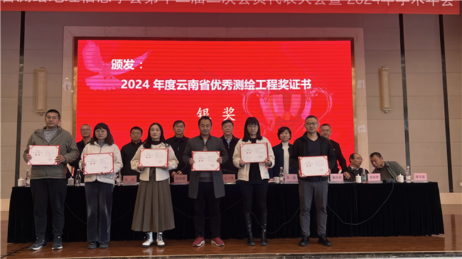 本次會(huì)議中,南方測(cè)繪“新型基礎(chǔ)測(cè)繪試點(diǎn)-全息采集及實(shí)景三維生產(chǎn)采購(gòu)項(xiàng)目”獲得2024年度云南省優(yōu)秀測(cè)繪工程獎(jiǎng)銀獎(jiǎng),“云南省水旱災(zāi)害風(fēng)險(xiǎn)普查項(xiàng)目河道地形測(cè)量委托服務(wù)”獲得2024年度云南省測(cè)繪科技進(jìn)步獎(jiǎng)三等獎(jiǎng),《基于車載激光LiDAR數(shù)據(jù)道路裂縫信息自動(dòng)提取方法》論文獲得云南省測(cè)繪地理信息學(xué)會(huì)2024年度優(yōu)秀論文。