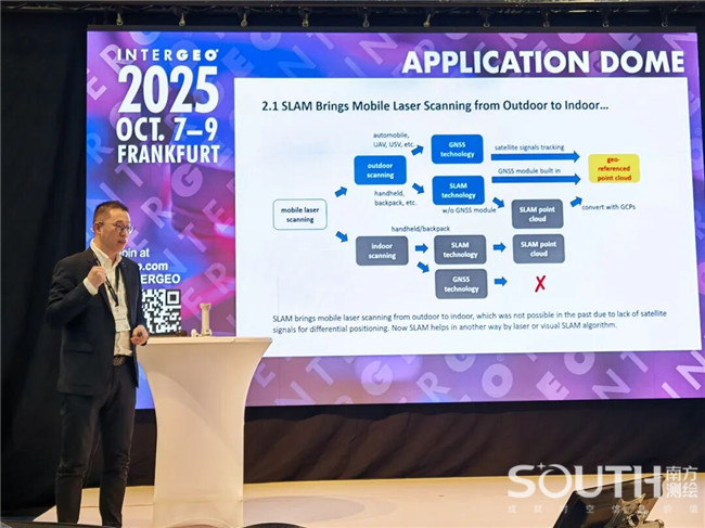 展會應(yīng)用會場同樣精彩紛呈。南方測繪國際業(yè)務(wù)副總經(jīng)理張少雄帶來的《GNSS Positioning While Satellites Unlocked? Now Possible!》專題技術(shù)報(bào)告,生動演示了在衛(wèi)星失鎖等復(fù)雜工況下仍可實(shí)現(xiàn)穩(wěn)定高精度定位的創(chuàng)新技術(shù),充分展現(xiàn)了地理空間技術(shù)未來的廣闊應(yīng)用潛力與發(fā)展方向,獲得了在場用戶的高度認(rèn)可。