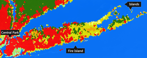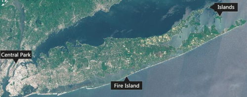 在這樣的精度下,我們很難分辨哪是哪,更不用提中央公園、長(zhǎng)島島嶼和火島的位置了。