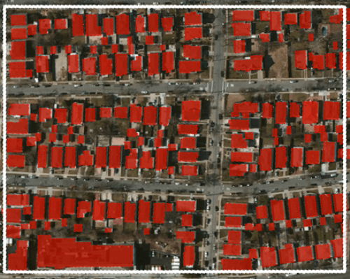 下圖是在ENVISAT衛(wèi)星的中分辨率成像光譜儀下得到的單個(gè)像素內(nèi),所包含的157棟建筑的圖像。