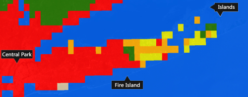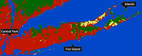 從圖中可以看出,這種分類(lèi)方法完美“錯(cuò)過(guò)了”中央公園、長(zhǎng)島島嶼和火島。當(dāng)然,這與其1千米的精度也是有關(guān)系的。