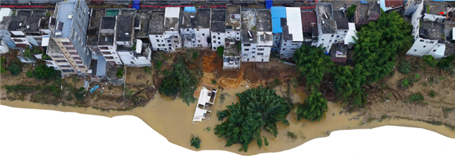 受臺(tái)風(fēng)“蘇拉”帶來(lái)的強(qiáng)降雨影響,廣東省云浮市羅定江大灣鎮(zhèn)河段遭遇1985年以來(lái)最大洪水。9月5日,大灣鎮(zhèn)河段兩岸出現(xiàn)多處崩岸險(xiǎn)情,一處房屋倒塌,多處房屋地基嚴(yán)重受損面臨傾倒風(fēng)險(xiǎn)。