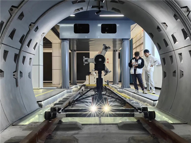 對于隧道部分區(qū)段光線弱的問題,研發(fā)設計更是富含巧思,在軌道車載平臺新增前后大燈,照射方向跟隨小車前行方向而改變,同時新增激光雷達,檢測行進方向的障礙物,還新增了急停按鈕,可以立刻終止小車及面陣相機的運行,極大協(xié)助了作業(yè)人員對小車前進方向上的障礙物做出有效判斷。此外,小車中控加入了高精度的慣導和傾角計,有利于獲取隧道線性幾何參數(shù),還原真實隧道點云模型。