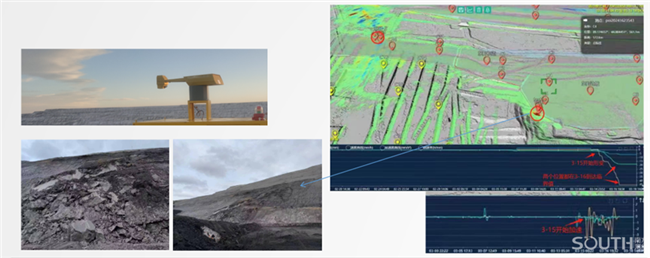 南方測繪于2023年12月開始承接新疆昌吉某露天礦邊坡監(jiān)測項目,選用雷達設備持續(xù)監(jiān)測至今。2024年3月14日,裝備監(jiān)測到礦區(qū)發(fā)生異常形變;并于次日監(jiān)測到形變加速,迅速發(fā)布黃色預警,成功預警滑塌。實踐證明,南方監(jiān)測裝備可有效覆蓋礦區(qū)重點范圍,不僅能長期穩(wěn)定運行,而且成像清晰、回波強度良好,匹配精準需求,保障安全生產(chǎn)。