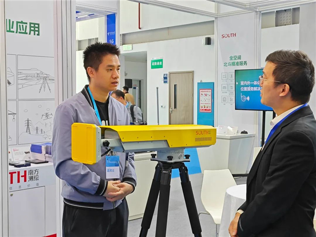 展區(qū)里,南方測繪技術(shù)工程師結(jié)合產(chǎn)品和項(xiàng)目案例,為參觀嘉賓們講解了室內(nèi)外定位整體解決方案,基于室內(nèi)北斗及室內(nèi)音頻融合高精度定位手段,提供更精準(zhǔn)的人員車輛位置獲取和服務(wù)能力,為城市工程建設(shè)、市政設(shè)施運(yùn)管服以及大眾出行導(dǎo)航應(yīng)用等場景提供更全面、更精準(zhǔn)的北斗高精度位置服務(wù)。