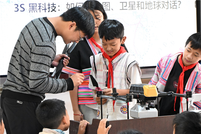 基諾族是我國最后一個(gè)被確認(rèn)的少數(shù)民族,現(xiàn)有兩萬多人,主要居住在云南省西雙版納傣族自治州景洪市基諾山基諾族鄉(xiāng),基諾山民族小學(xué)大部分學(xué)生為基諾族,這場(chǎng)由南方測(cè)繪與云南大學(xué)地球科學(xué)學(xué)院科普?qǐng)F(tuán)隊(duì)共同打造的校園科普之旅,猶如一陣溫暖的春風(fēng),吹進(jìn)了同學(xué)們的心田,在他們心中種下了科技與創(chuàng)新的種子,相信在未來的日子里,這些種子定會(huì)生根發(fā)芽,綻放出絢麗的科技之花。