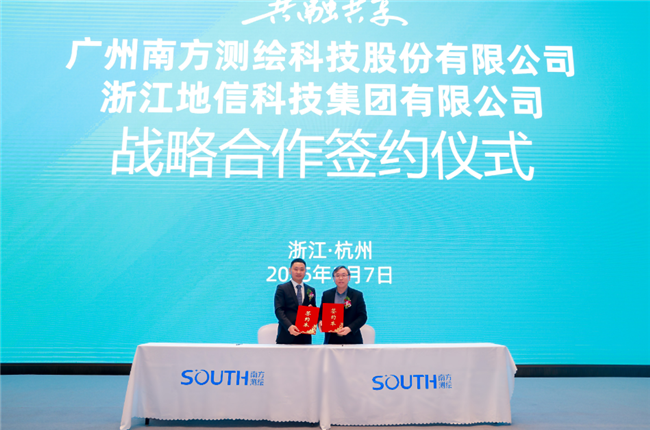3月7日,南方測(cè)繪集團(tuán)與浙江地信科技集團(tuán)有限公司(以下簡(jiǎn)稱"地信科技集團(tuán)")在杭州正式簽署戰(zhàn)略合作協(xié)議。南方測(cè)繪集團(tuán)副總裁向高照與地信科技集團(tuán)黨委書(shū)記、董事長(zhǎng)葛為燎共同出席簽約儀式并代表雙方簽字,標(biāo)志著兩家行業(yè)領(lǐng)軍企業(yè)正式開(kāi)啟全方位戰(zhàn)略合作新篇章。