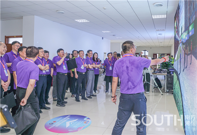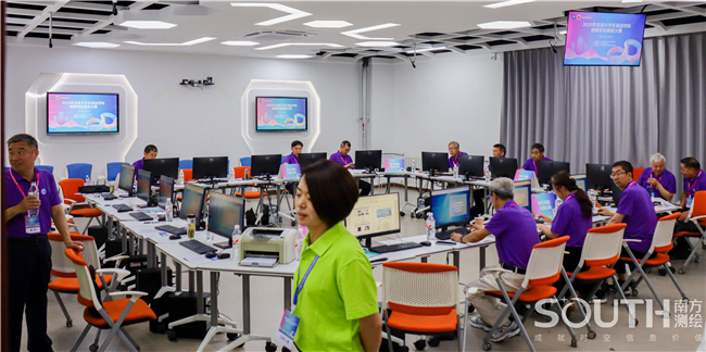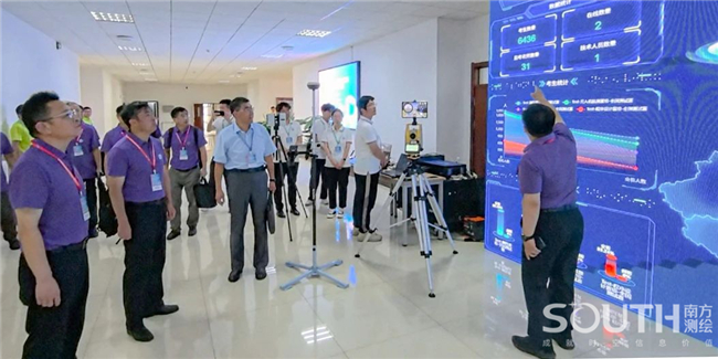開(kāi)幕式后,專(zhuān)家領(lǐng)導(dǎo)一行巡視并觀看線下評(píng)委現(xiàn)場(chǎng)。競(jìng)賽現(xiàn)場(chǎng),東北大學(xué)車(chē)德福教授向與會(huì)專(zhuān)家介紹了南方測(cè)繪、東北大學(xué)最新聯(lián)合開(kāi)發(fā)的大賽展示平臺(tái),該平臺(tái)整合了競(jìng)賽參與總?cè)藬?shù)、賽項(xiàng)考生統(tǒng)計(jì)、考試與閱卷進(jìn)度、考生省份分布、院校報(bào)名統(tǒng)計(jì)及監(jiān)考畫(huà)面等核心數(shù)據(jù),實(shí)現(xiàn)了關(guān)鍵指標(biāo)的集中可視化管理的功能,顯著提升了競(jìng)賽信息化管理水平。