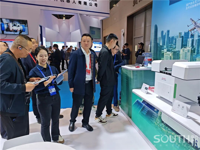 南方測(cè)繪攜高精度測(cè)量機(jī)器人、覓境測(cè)量系統(tǒng)、輕小型機(jī)載激光雷達(dá)、實(shí)景雙攝RTK、一體化北斗位移棧、精蟄3.0管線探測(cè)儀等高端數(shù)據(jù)采集裝備,以及挖掘機(jī)3D引導(dǎo)系統(tǒng)、低空信息服務(wù)、北斗立體感知監(jiān)測(cè)等專業(yè)解決方案驚艷亮相,展臺(tái)人氣火爆,成為博覽會(huì)現(xiàn)場(chǎng)備受矚目的“打卡勝地”。