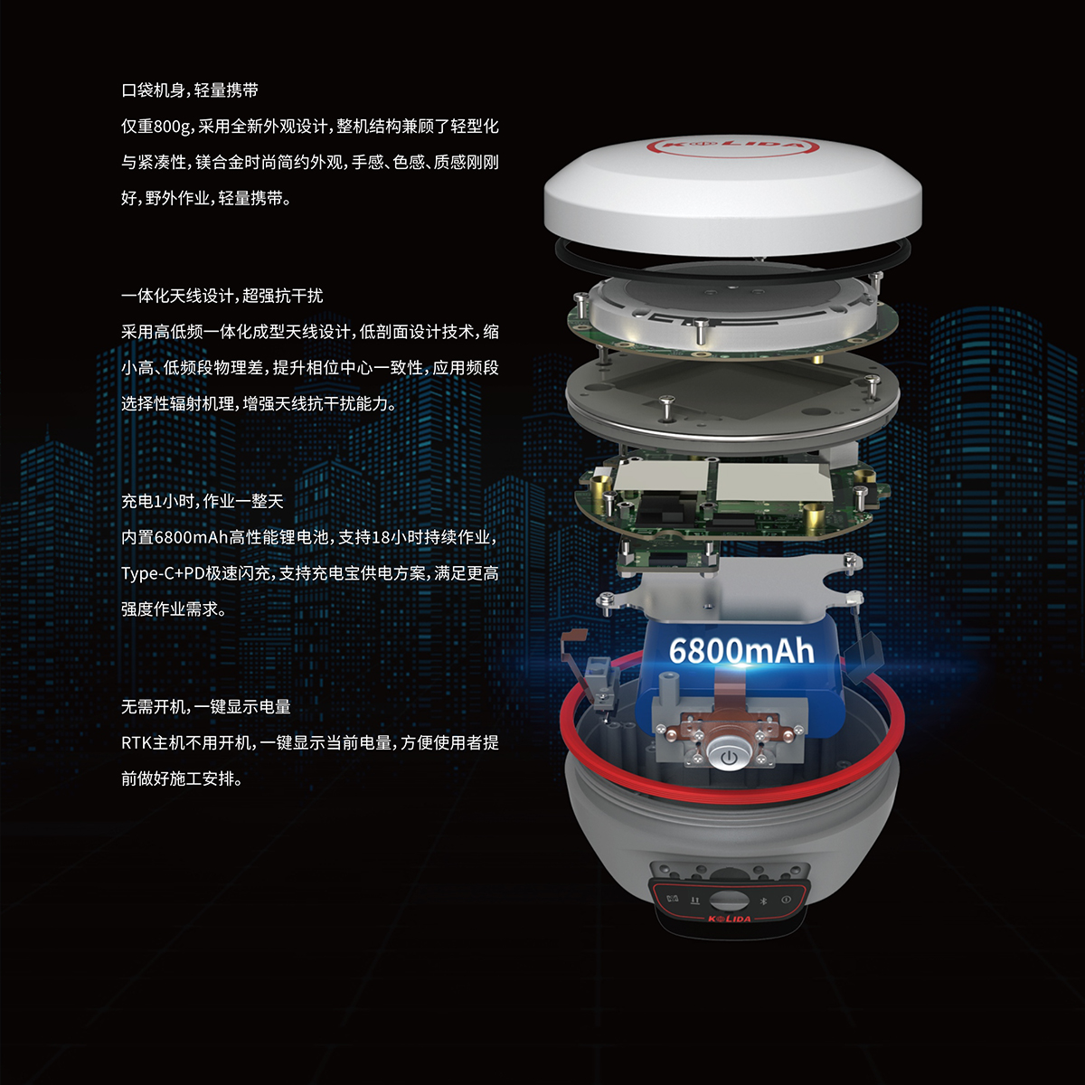 電池 | 內(nèi)置6800mAh高性能鋰電池 7.4V;移動站手簿網(wǎng)絡(luò)模式作業(yè)滿足18小時續(xù)航時間 |