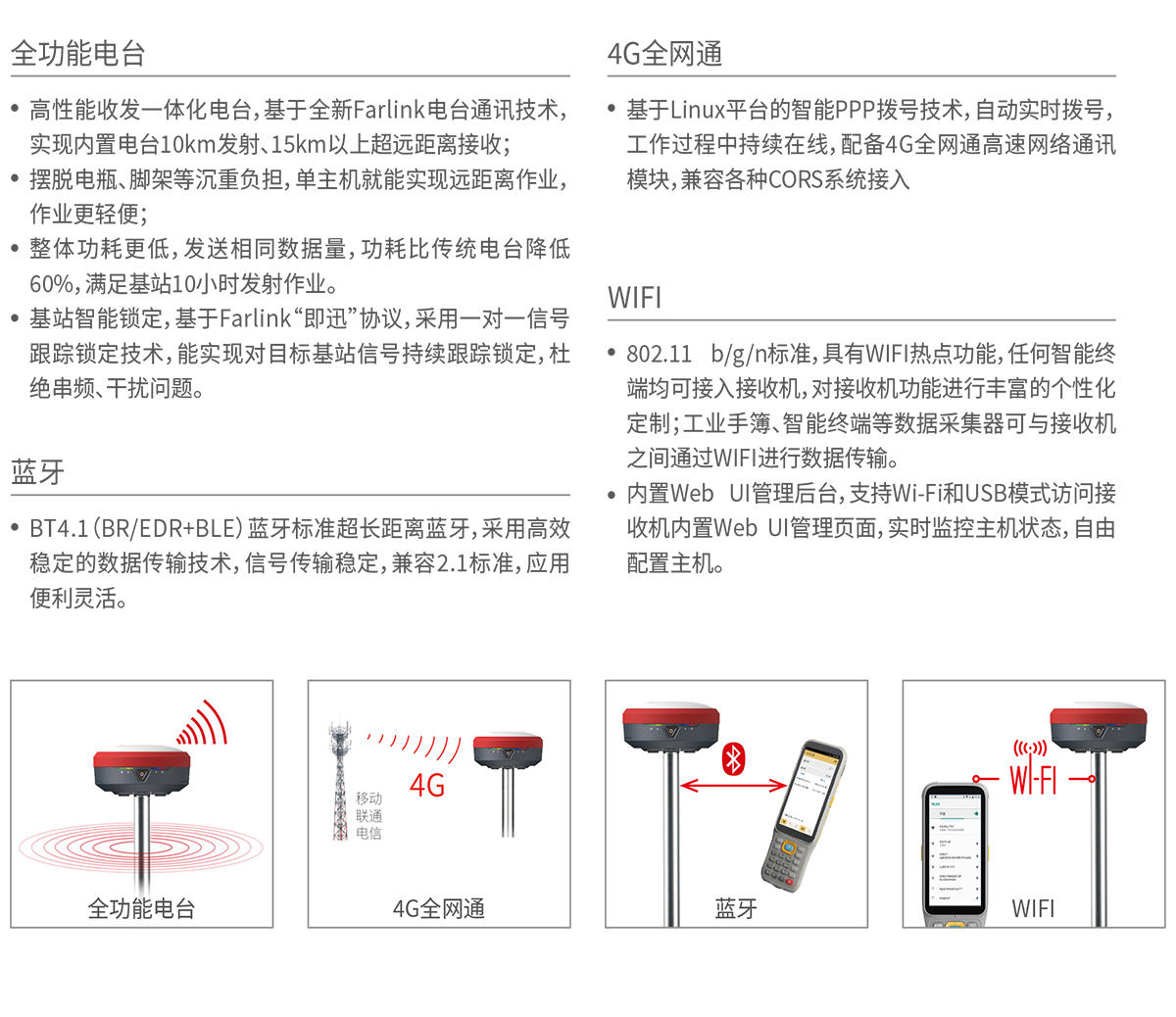 4G全網(wǎng)通 | 基于Linux平臺(tái)的智能PPP撥號(hào)技術(shù),自動(dòng)實(shí)時(shí)撥號(hào),工作過程中持續(xù)在線,配備4G全網(wǎng)通高速網(wǎng)絡(luò)通訊模塊,兼容各種CORS系統(tǒng)接入 |