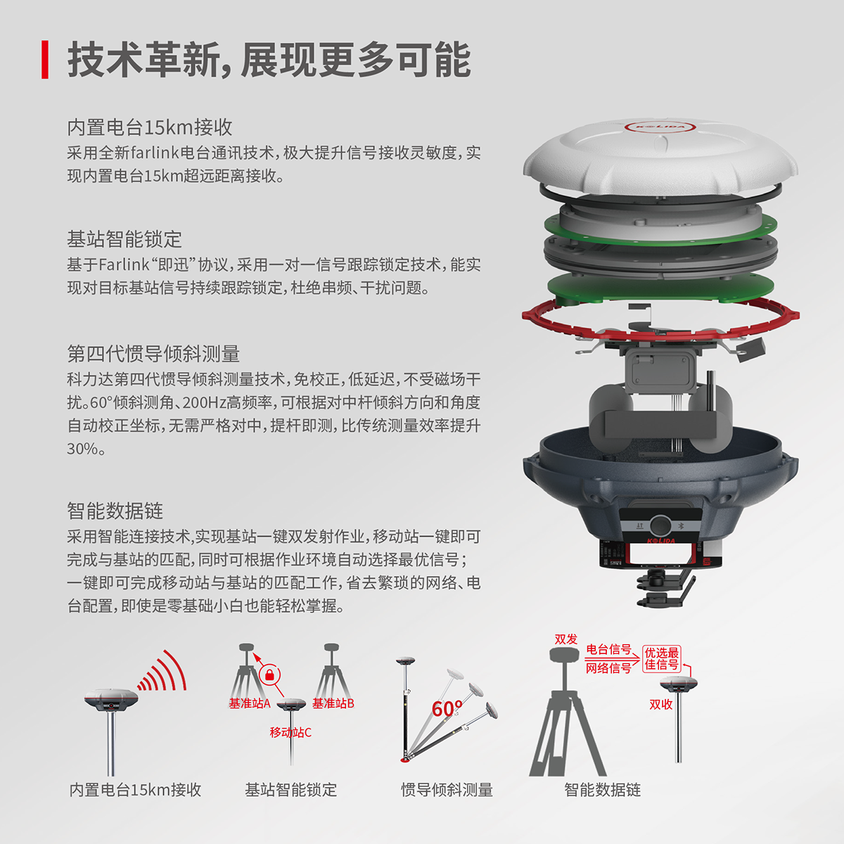 慣導(dǎo)傾斜測(cè)量 | 內(nèi)置IMU慣性測(cè)量傳感器,支持慣導(dǎo)傾斜測(cè)量功能,根據(jù)對(duì)中桿傾斜方向和角度自動(dòng)校正坐標(biāo)。 |