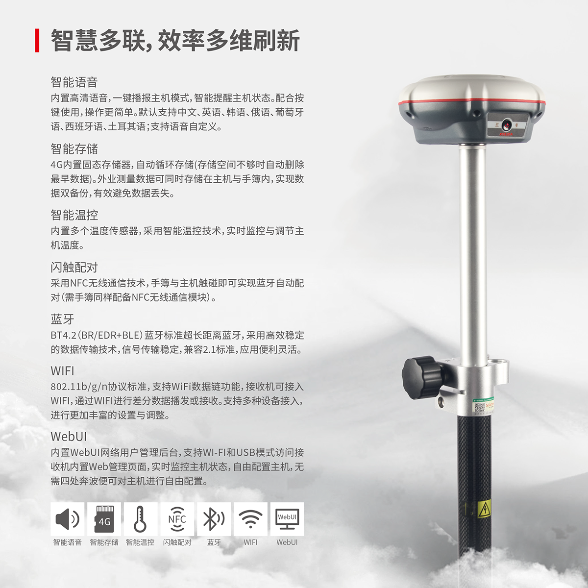web交互 | 內(nèi)置Web UI管理后臺(tái),支持Wi-Fi和USB模式訪問(wèn)接收機(jī)內(nèi)置Web UI管理頁(yè)面,實(shí)時(shí)監(jiān)控主機(jī)狀態(tài),自由配置主機(jī)。 |