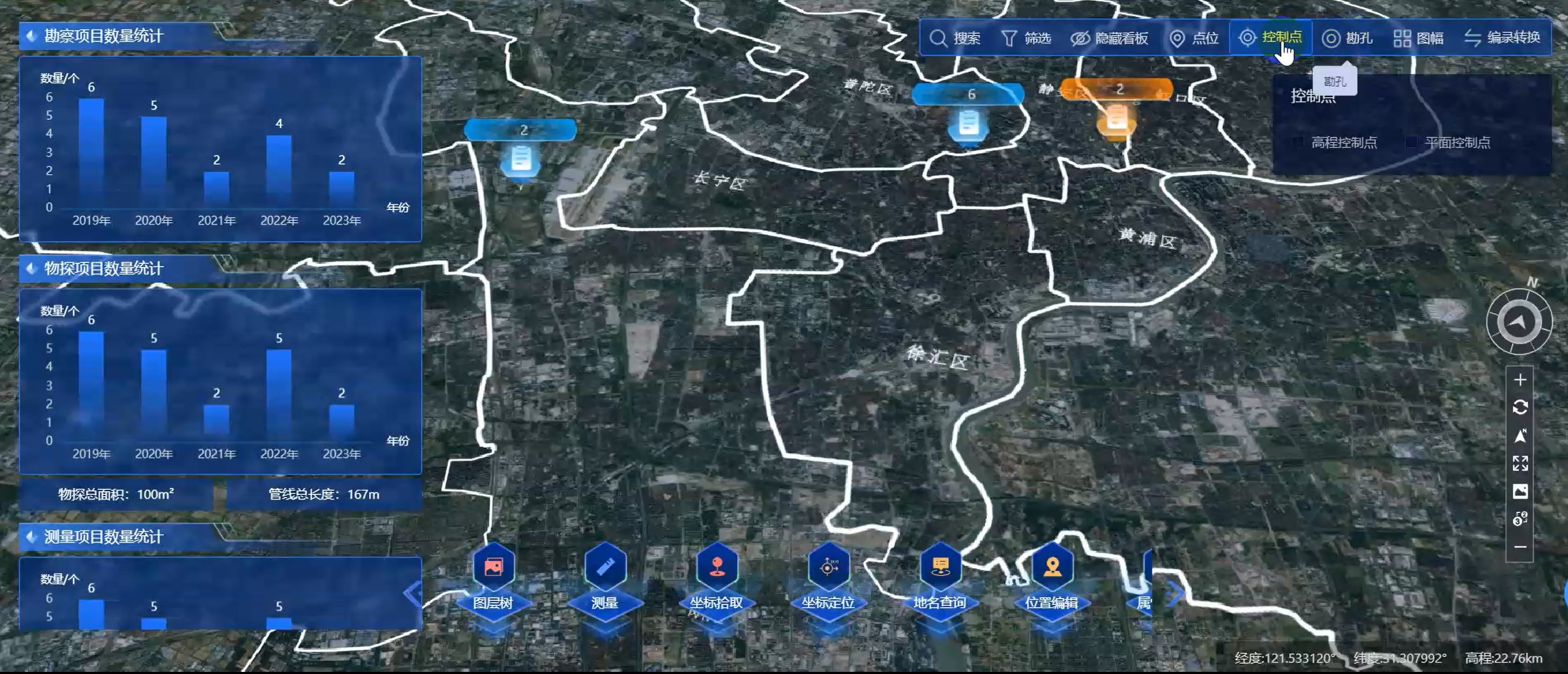 針對工程項自中的測繪生產(chǎn)與管理現(xiàn)狀問題。以國產(chǎn)GIS平臺為底層平臺,定制開發(fā)了智慧測繪數(shù)字化管理平臺,平臺包括智慧測繪移動端子系統(tǒng)、智慧測繪數(shù)據(jù)中心管理子系統(tǒng)、智慧測繪三維可視化子系統(tǒng)。通過平臺的使用,能夠大幅提升作業(yè)效率、有效降低出錯機率、提升測繪數(shù)據(jù)管理效能、豐富項目管理手段、提升成果數(shù)據(jù)利用價值。