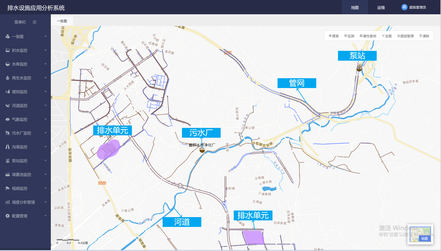 從“排水戶(排水單元)--管網(wǎng)--泵站--污水廠--河涌”打通水務(wù)管理上下游融合關(guān)聯(lián)數(shù)據(jù)形成“水環(huán)境管理一張圖”,協(xié)助管理者捋清流域內(nèi)管理對象之間的關(guān)聯(lián)關(guān)系。