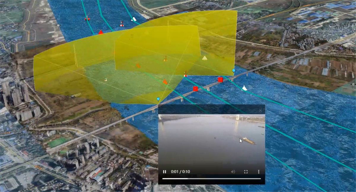通過對地形地貌、涉河建筑、通航情況等進行三維實景展示,對水域海事要素進行可視化管理,對所有的傳感設備進行協(xié)同感知,并結(jié)合具體的業(yè)務場景進行定制化分析,全方位賦能智慧海事三維應用。