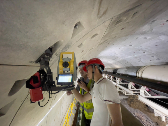 在隧道開挖導向整個方面我們也推出了國產(chǎn)化解決方案,通過測量機器人輔助,在盾構(gòu)機掘進的時候,不間斷地進行方向校驗,保障整體工程的精準性。
